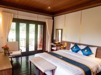 Ẩn mình giữa sắc xanh dịu mát của núi rừng Ba Bể, khu nhà gỗ Eco-Deluxe là lựa chọn lý tưởng cho những ai đang tìm kiếm không gian nghỉ dưỡng riêng tư, gần gũi với thiên nhiên nhưng vẫn đảm bảo sự tiện nghi hiện đại.